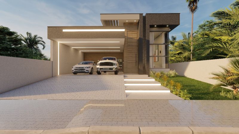 Estilo contemporâneo, com integração de ambientes e área externa com piscina.